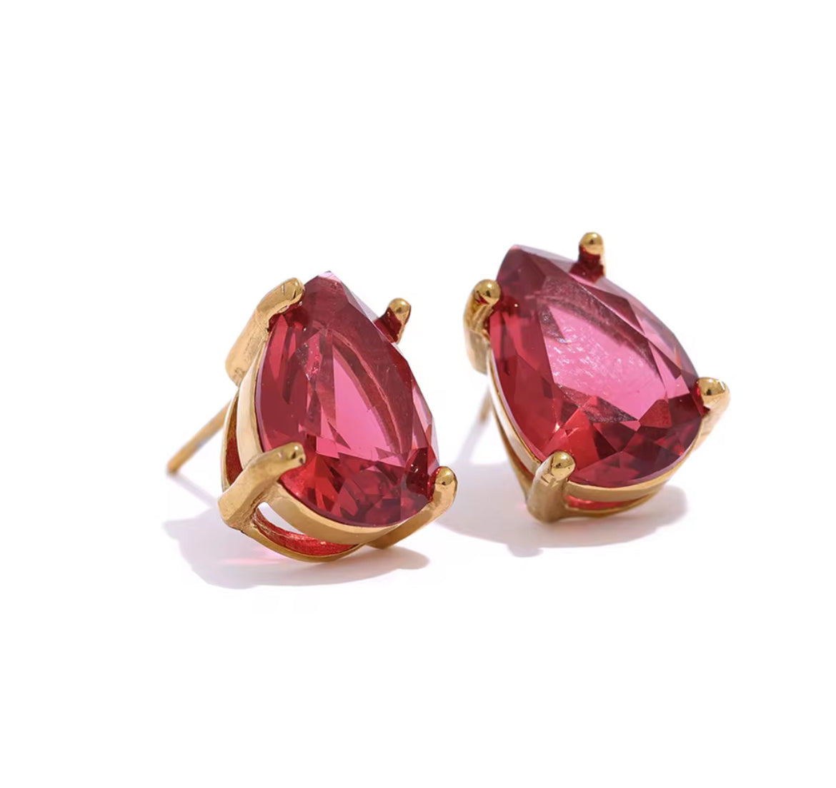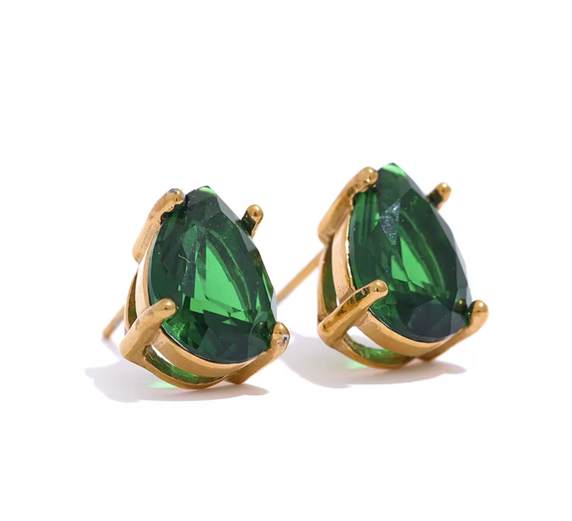 Estos aretes de zirconia en forma de gota son la pieza perfecta para añadir un toque de color y sofisticación a tu look. Disponibles en hermosos tonos de granada, verde esmeralda, negro elegante y cristal transparente, cada par captura la luz con un brillo excepcional que realza tu estilo personal.
