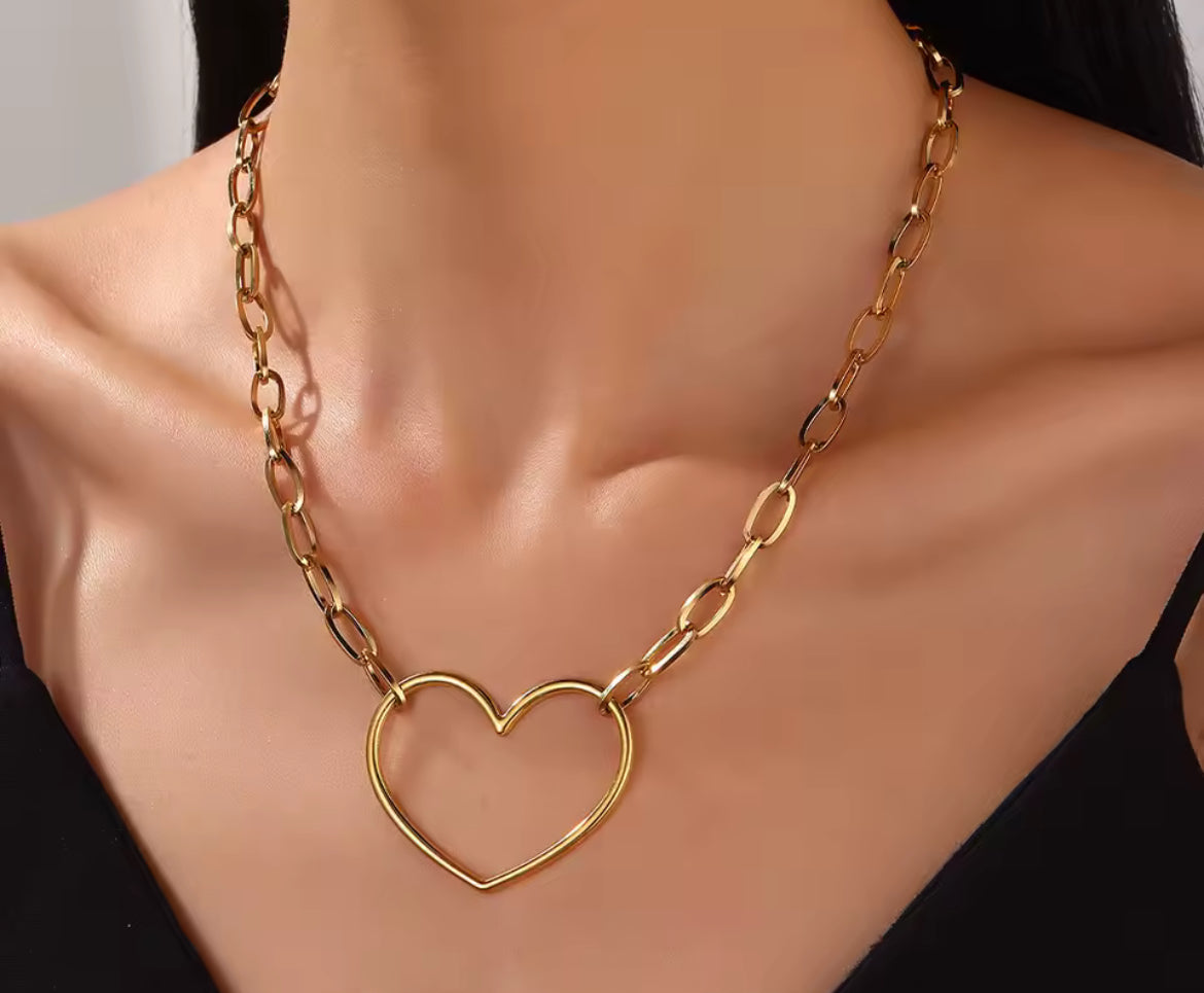 Un collar que expresa estilo y delicadeza. Este diseño minimalista con corazón central y cadena de eslabones es la pieza perfecta para complementar tu look diario o para ocasiones especiales.