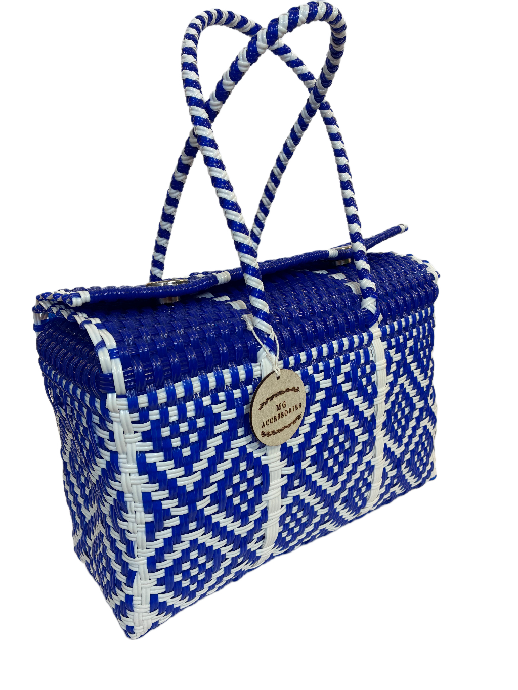 Esta hermosa bolsa tejida combina funcionalidad y sostenibilidad. Elaborada completamente a mano por artesanos mexicanos utilizando plástico reciclado, cada pieza es única y contribuye al cuidado del medio ambiente.